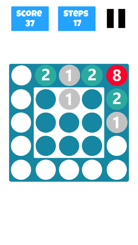 1+1 is an addictive puzzle game with a simple algorithm behind itself. At every step a new "1" circle will be randomly spawned in the centre of the table, on one of that 9 circles. You have to send it to a border by swiping the screen horizontally, vertically, to the left or to the right. If you can't do this and after the swipe the circle is still in the centre of the table, the game is over. The circles on the border will also move in the direction which you indicated. 2 circles of same value will become one with the value of their addition. Creating circles with big values will increase more and more your score.