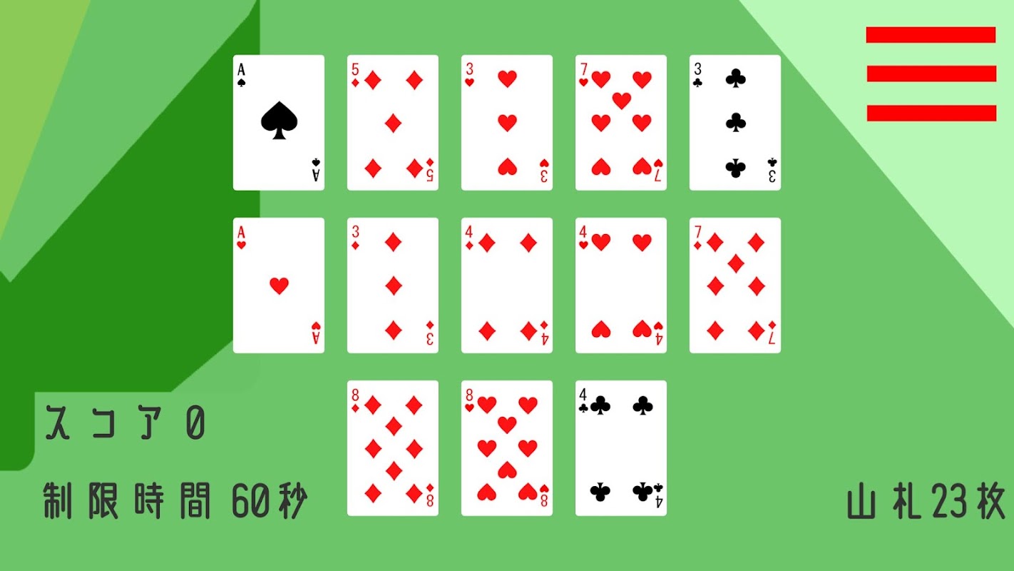 2枚のカードの合計が10になる組み合わせを見つけ出す簡単なゲーム!
