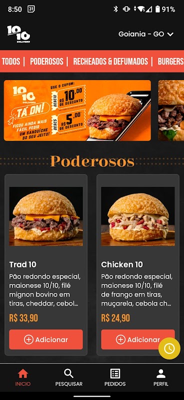 O app 10/10 Delivery foi desenvolvido para você pedir o seu lanche quando quiser e de onde estiver, com a praticidade e rapidez que só o 10/10 oferece!