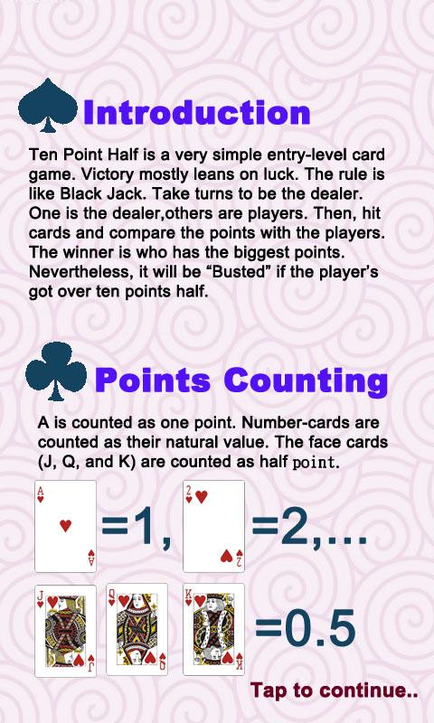 Ten Point Half(10.5) is a very simple entry-level card game