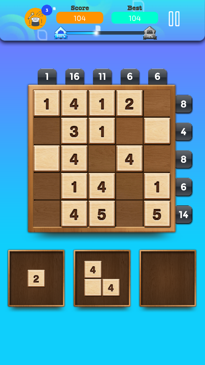 Drag the number blocks on the board to get a total of 10 in any row or column!