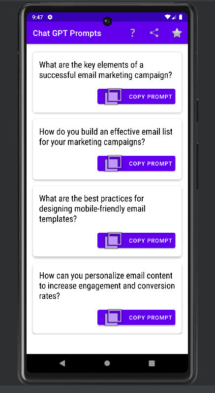 Turn your ideas into reality with AI Prompter Engineer, your ultimate companion for unlocking creativity and productivity. Whether you're a writer, marketer, entrepreneur, or simply curious, our app provides 1000+ expertly crafted AI prompts across diverse categories.