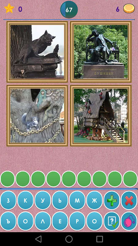 Логические задачи, 300 уровней. В разделе "Ребусы" 145 уровней. Добавлен раздел "4 фото 1 слово", 265 уровней.