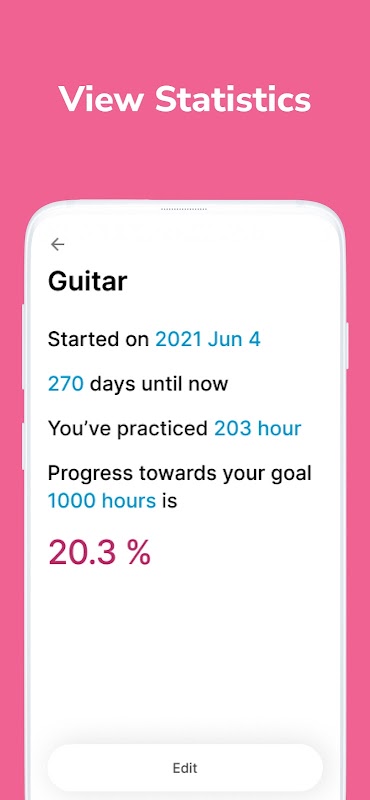 While other habit trackers in the market are making things complicated, ”1000 Hours” tries to make things simpler. Instead of banners popping up reminding you to practice every day, it is just here helping you quickly record your every single minute achieving that 1000 hours.
