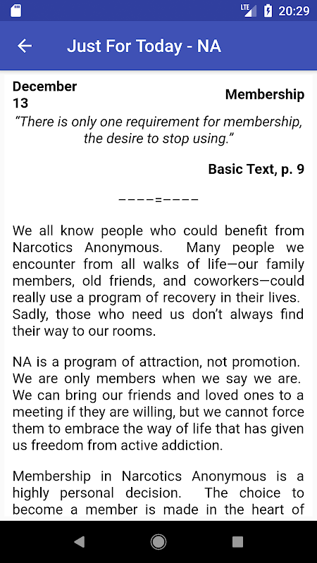 This App is not affiliated to, endorsed by or sponsored by any 12 Step Fellowship including but not limited to Narcotics Anonymous or A.A.W.S.