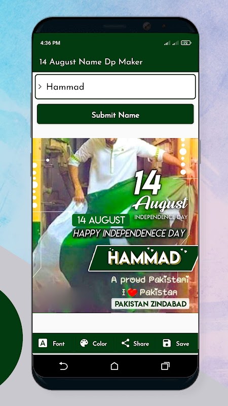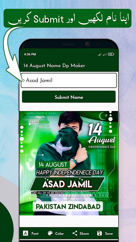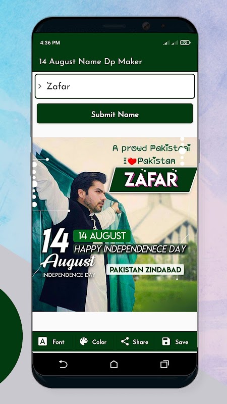 Celebrate Pakistan's 77th Independence Day with the "14 August Name DP Maker" app! This app is your ultimate tool for creating personalized display pictures (DP) adorned with your name and patriotic elements. Show your love for the nation with pride as you share your unique DP on this historic occasion.