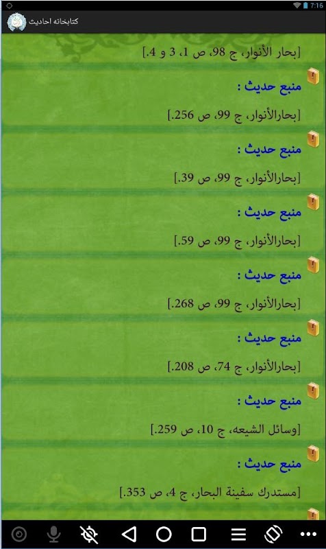 - Ability to send the desired hadith with SMS and send in the phone memory