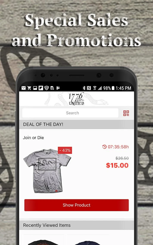 With easy inventory navigation for all genders and sizes, the official 1776 United app is the ultimate shopping experience for any patriot looking to flaunt his or her love of America, our military, and the Second Amendment. After downloading the app, be sure to enroll in our rewards program to make your app experience even better!
