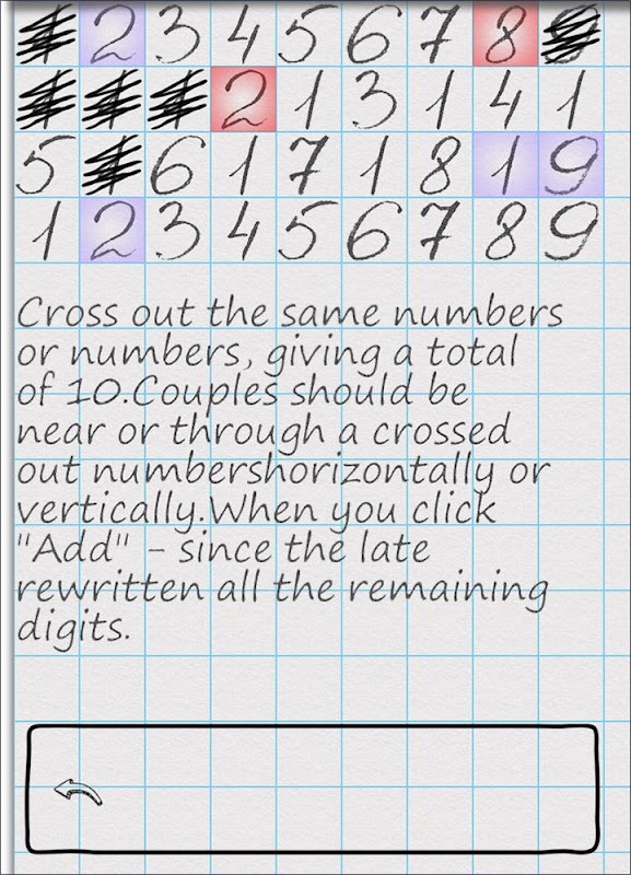 Cross out the same numbers, cross out the numbers that add up to 10.