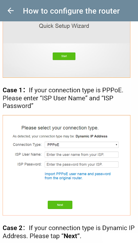 The app explains how to setup the router admin. You log into the router via your browser with your default username and password.