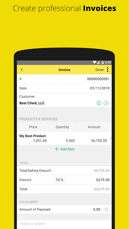 The free version of 1C: Invoice for Small Business can be used to create a limited number of invoices and estimates. You can upgrade in-app to create an unlimited number of invoices and estimates.