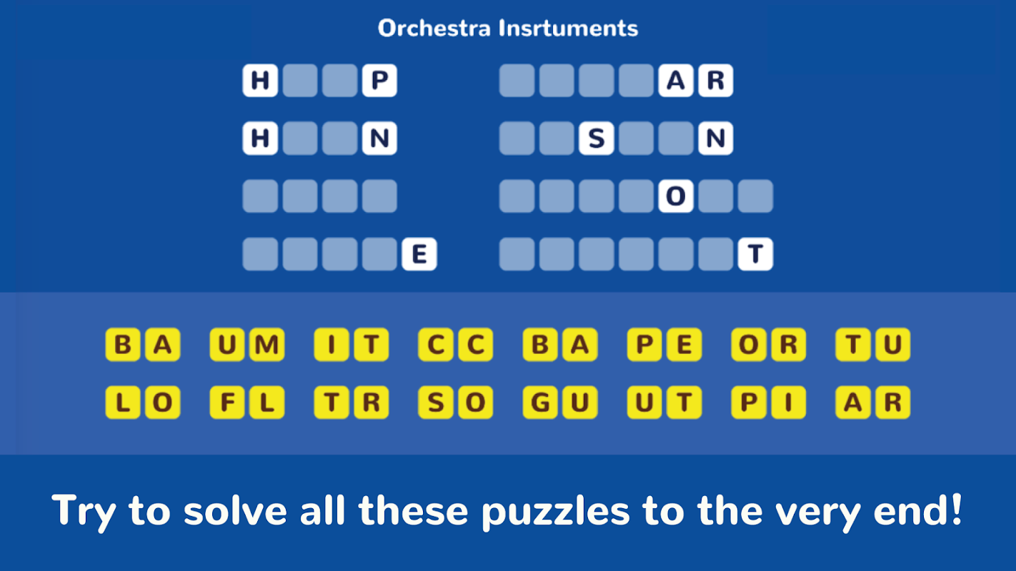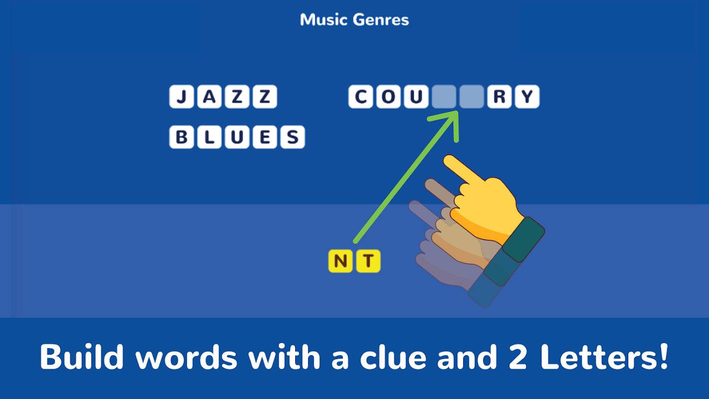 2 Letters is one of the best word games for everyone. Exercise your brain to guess the words. Have a great time together with all the puzzles from this amazing word game, 2 Letters!