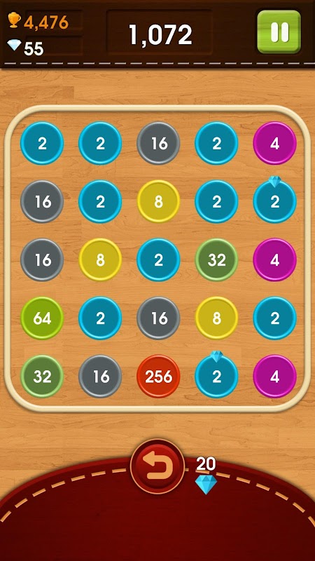 The Goal of this game, you tap and link line dot number 2, 4, 8, 16 ... when link 2 or more the end dot line link when merged to new number dot and other dot destroyed and the new dot number when drop to the board. the board has size 5x5. game over when not create link when dots.