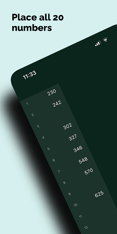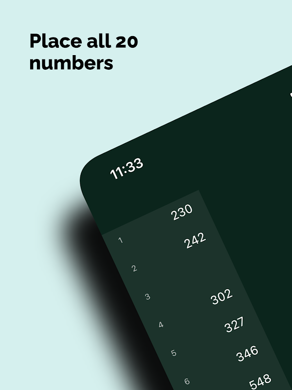 The game requires attention and a good sense of numerical order. You'll need to make quick and accurate decisions to correctly place the numbers in the list as they are presented. The goal is to complete entering the 20 numbers in the list so that they are sorted in ascending order.