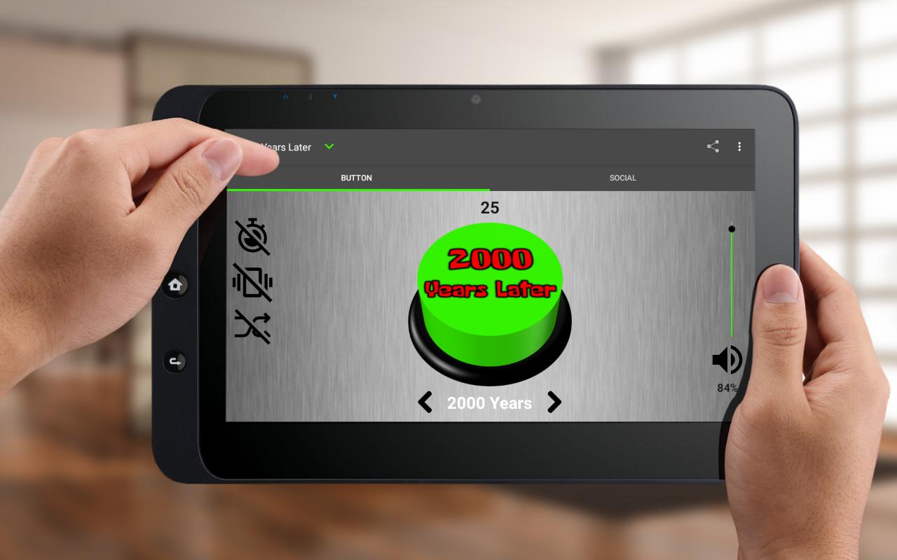 In 2000 Years Later Button are many meme sound effects that you can switch by pressing right or left arrow. You can use the application sounds effects to make fun with your friends or simply entertain someone.