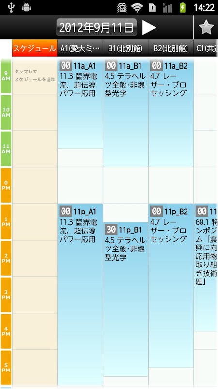 It is an application that you can browse the lecture information of "Fall 2012 73rd Japan Society of Applied Physics academic lecture".