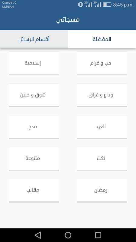 مسجات تهنئه لكافه المناسبات متجدده بشكل مستمر كما يمكنك حفظ مسجاتك في قسم خاص بالمفضله ليسهل عليك الرجوع إليها في اي وقت و اي مناسبه