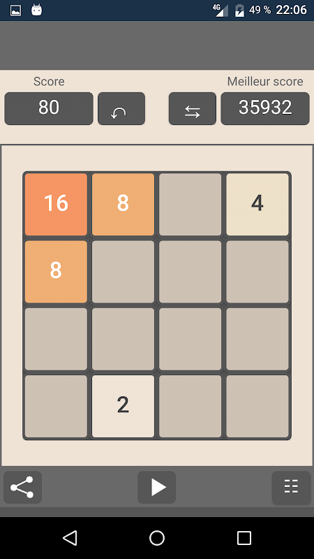 The object of the game is to drag tiles on a grid, to combine tiles of the same values and thus create a tile bearing the number 2048. The player can however continue to play after this achieved goal to make the best score possible.