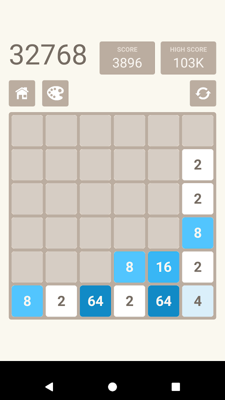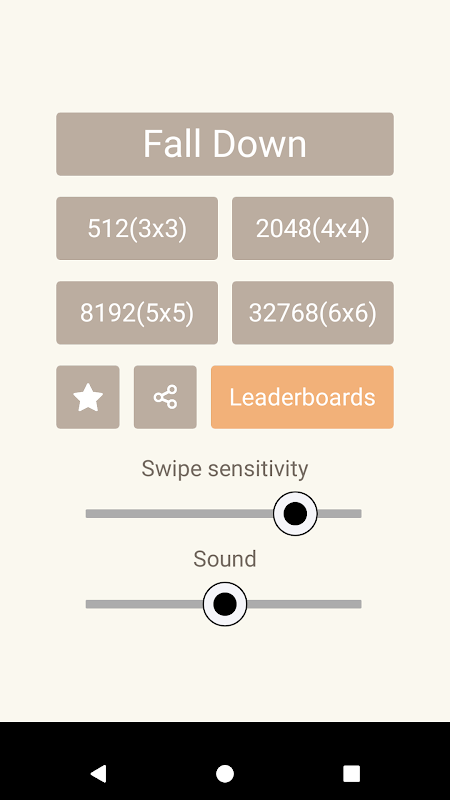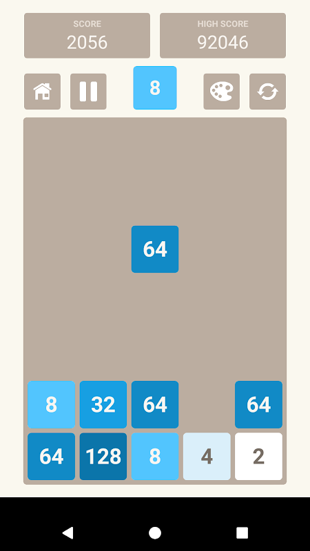 * Fall Down - Solve the problem of falling numbers. Consists of numbers 2, 4, 8, 16, 32 and 64, which will randomly be issued one number at a time. When that number fell to the ground It will combine with the same and adjacent numbers.
