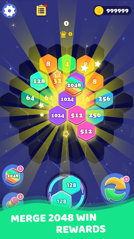 Merge hexa puzzle and Make 2048! What is your highest score?
