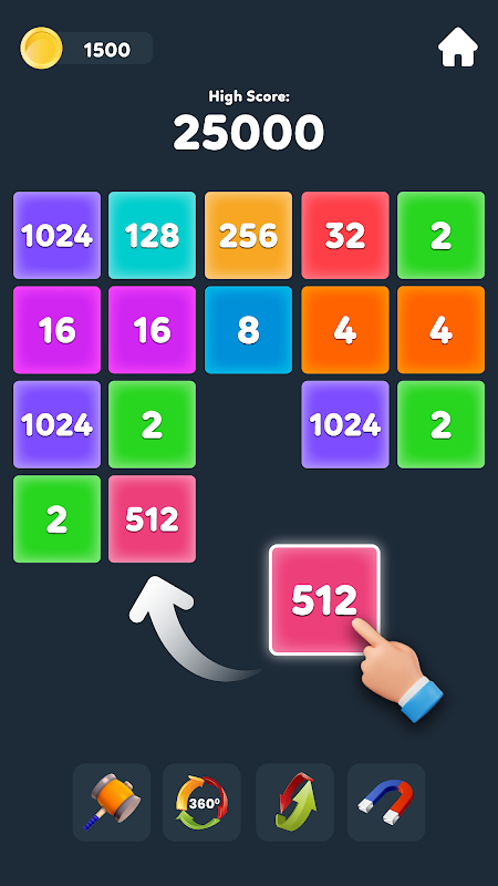 Merge numbers puzzles and match colorful number blocks to reach 1024 and 2048