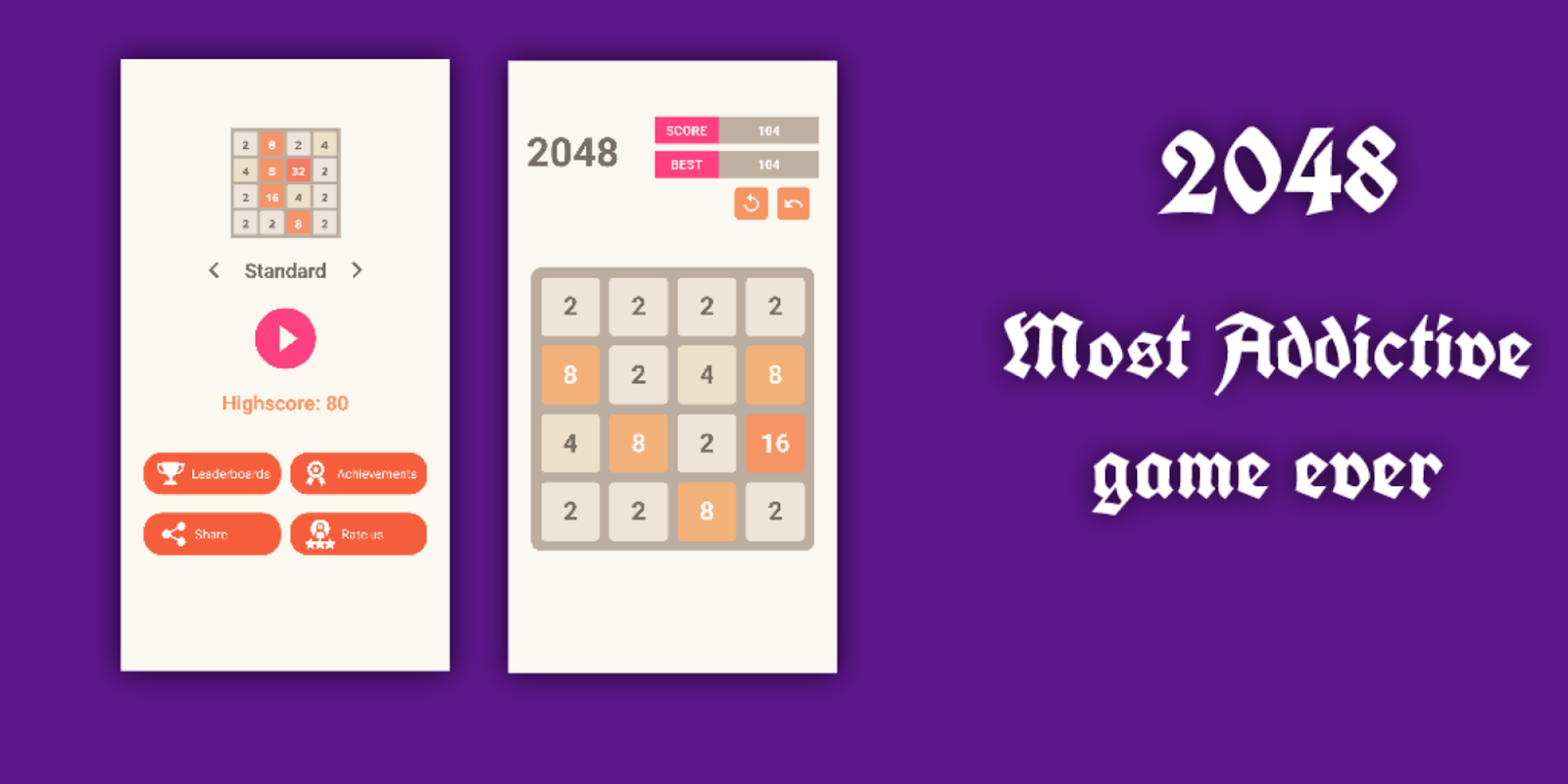 The classic 2048 is a fun, addictive and simple puzzle game. You join the numbers and get to the 1024 tile, the 2048 tile, the 4096 tile, the 8192 tile and play as much more as you wish to make it more challenging and get to the highest scores on the leaderboard!😁