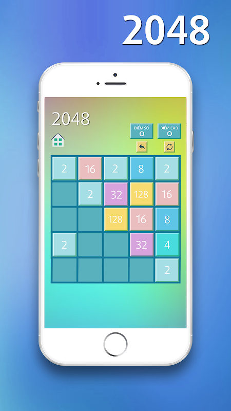 There are two numbers: 2 and 4, you are moving horizontally or vertically, if the cells are the same value close to each other will be a new cell is equal to the sum of two cells. You have to move to create as many cells as possible. The game will end if there is no way to move two cells with the same value close together.
