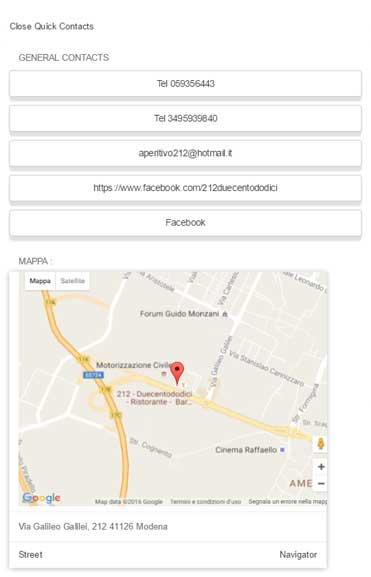 Con l'applicazione entri nel mondo trendy del 212, dove potrai rimanere informato su tutte le iniziative in programma, visualizzare gallery fotografiche e con un semplice Sms o utilizzando WhatsApp potrai prenotare un tavolo o ordinare dal menù ancor prima di essere arrivato al locale. Consulta la mappa stradale e attiva il navigatore per raggiungerci!