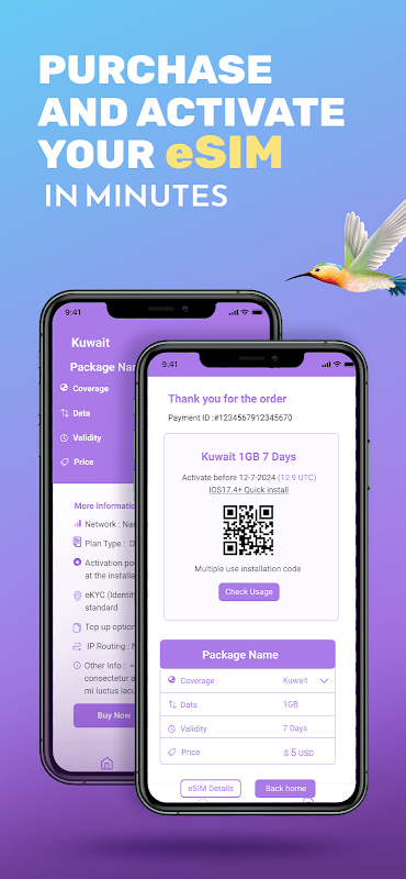 Experience the convenience of immediate eSIM activation. Purchase and install your eSIM directly through the app without any physical SIM cards or lengthy setup processes.