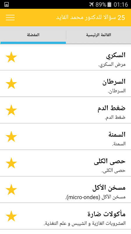 The application provides valuable guidance and useful advice from Dr. Mohamed Al Fayed -Mohamed Faid- specialist in nutrition and food industries. The benefits of the application contains a number of dishes and food tips for patients with a number of common diseases, as well as tips and general guidance.