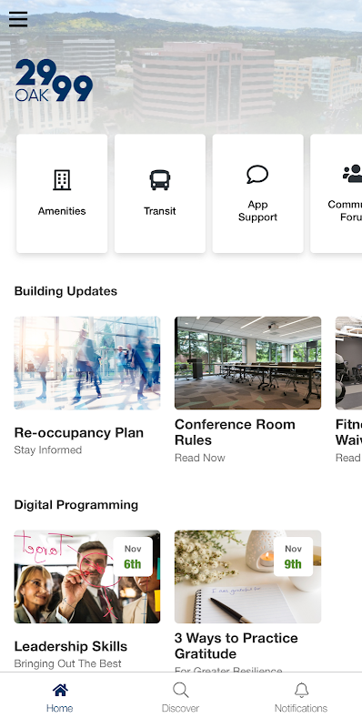 2999 Oak is located within the Contra Costa Centre Transit Village - discover the area and onsite amenities. Keep up to date on events at the building. Attend, save, exercise, eat, learn, connect - all on the go. Love where you work!
