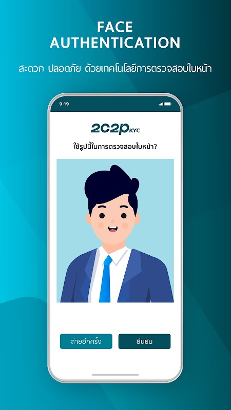 - Facial authentication by taking a selfie to be compared with Thai ID image.