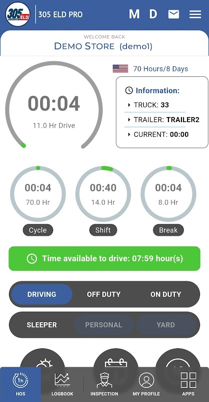 FMCSA-compliant app to record driver duty status and meet the following regulations: