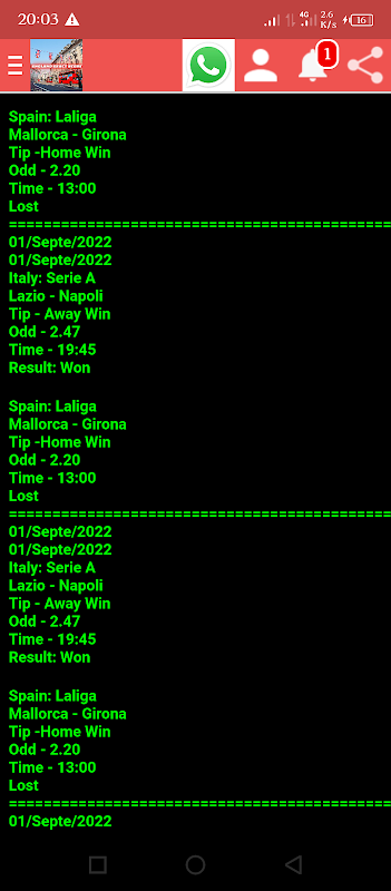The winning rate of the correct score tips we offer in the VIP section of our application is 95%. You can become our VIP member by clicking on the VIP option of our application.