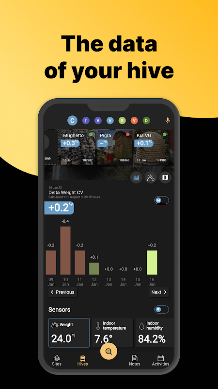With 3Bee's app you can access it both as a beekeeper and as an Adopter. As a beekeeper you will be able to use it as a managing tool for your hives, better organizing and handling your apiary work, saving time and increasing your productivity. You will be able to set up a calendar of operations, create written and voice notes, set deadlines and notifications.