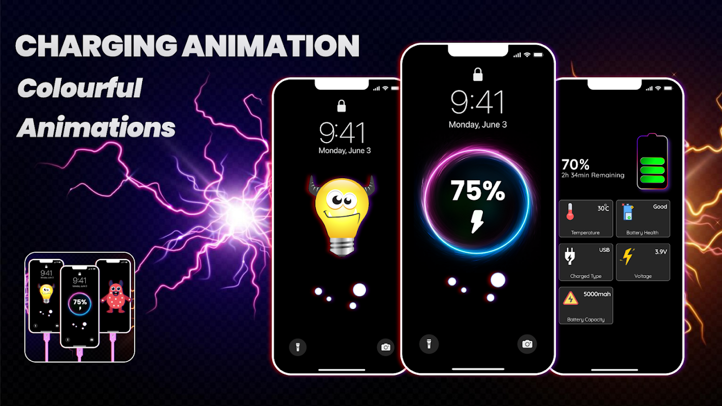 Bring your battery charging screen to life with cool styles and vibrant animations.