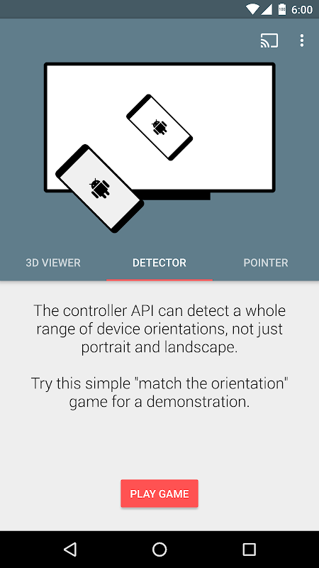This Android Experiment turns your phone into a 3D controller. It detects the device's orientation in 3D space (where it's pointing and how it's rotated) and makes that information accessible through a simple API.