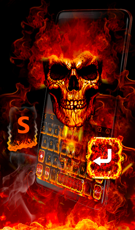 Get 3D fire burning skull keyboard with live Fire Burning Skull wallpaper and fire burning keypad.