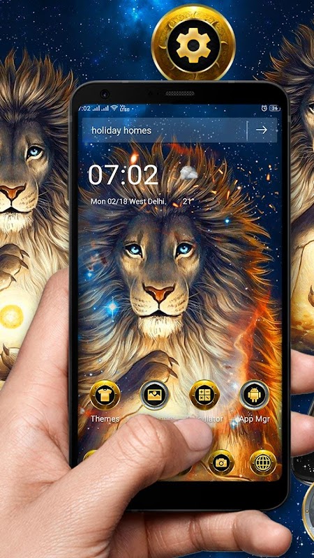 🦁Chane your device to 3D galaxy lion parallax theme. If you apply it you can enjoy free feature that you only would have dreamed off. This is very smooth theme for feeling its smoothness. swipe on screen and get your exquisite decorated golden icons and folder.