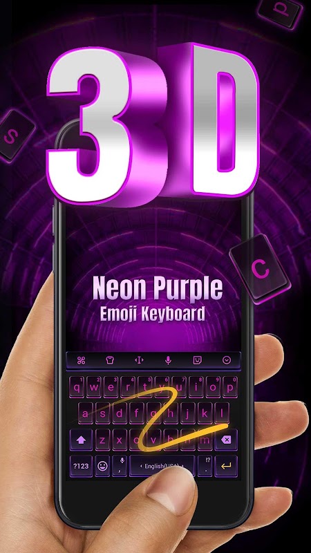 This 3D Neon Purple Keyboard Theme is a plugin app, please download the main app Facemoji Keyboard + GIFS for 3D Neon Purple Keyboard for Android to run.