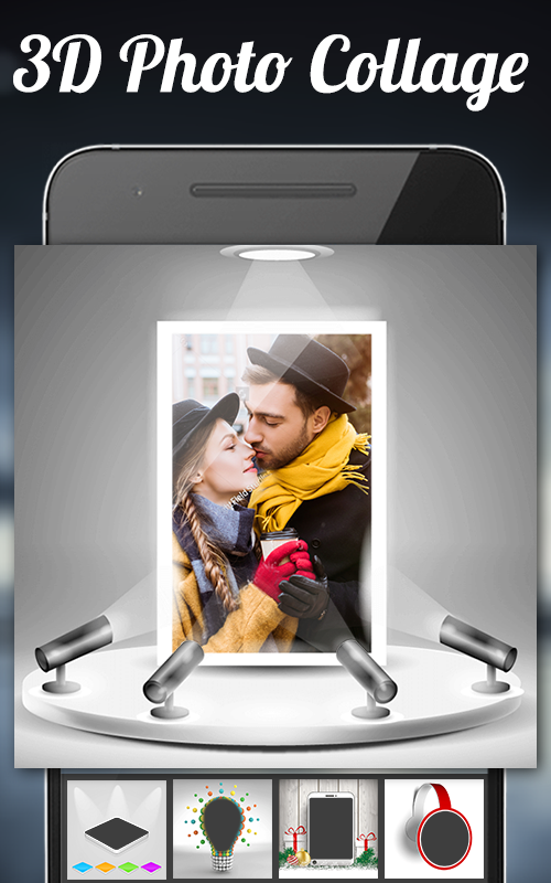 3D Collage Maker delivers a best 3D Perspective from photos and sets according to the 3D frames. Giving real 3d look to your normal 2D pictures. With many 3D Collage to choose from and you will be able to create a variety of 3D Pictures.