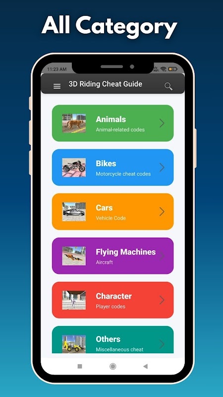 This app gives you bike, car, animals codes and tips for 3D bike riding fun. All cheats are collected in one simple place so you can find them easily.