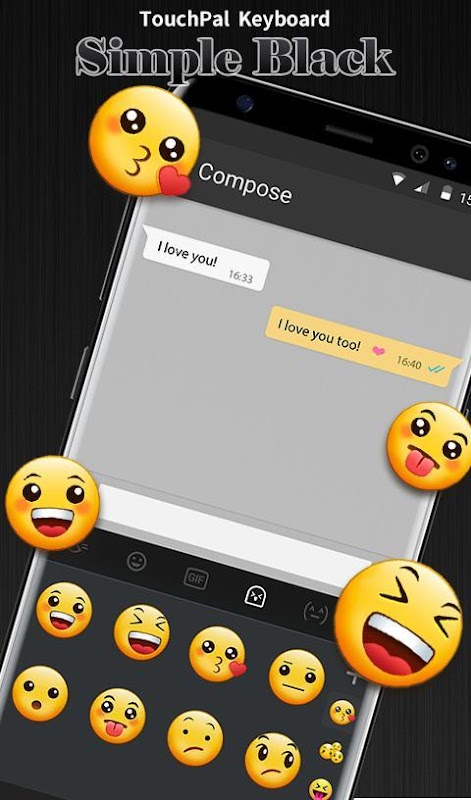 New Free 3D Simple Black keyboard theme for TouchPal Emoji Keyboard. Typing fun!