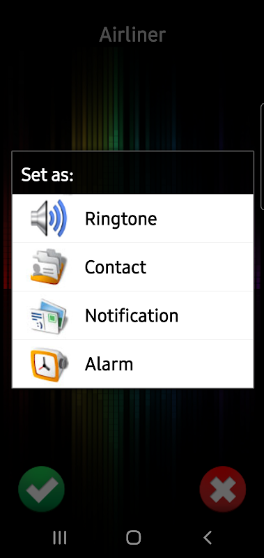 Press the green check to use these 3D sounds and songs as: