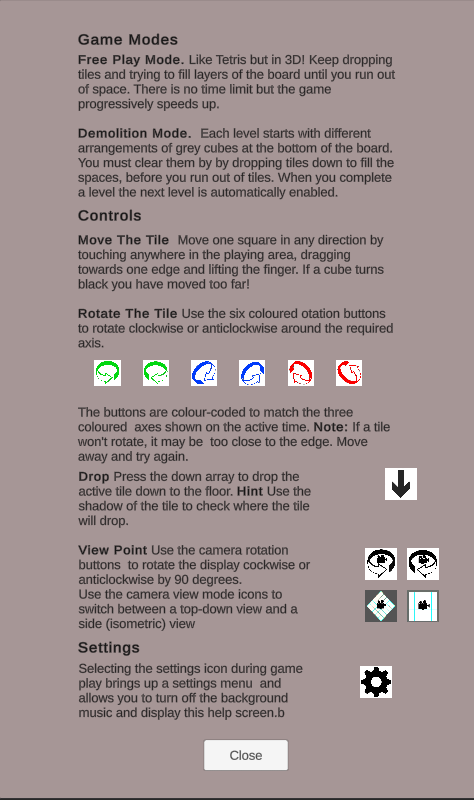 Drop 3D blocks to form complete levels. Similar to normal Tetris but in 3D.