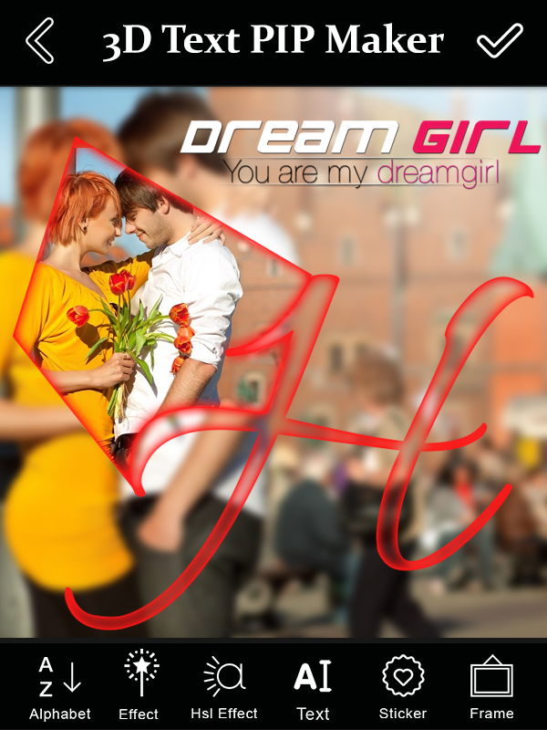 3D Text PIP Collage Maker is a new app for making unusual pip , making alphabet pip photos together in a harmonious way. Just put some pictures on the canvas to create an eye-catching photo story of your family, friends, or vacation.3D Text PIP Collage Want to create eye catching photo pip with blending effect or want to create photo album of your photos with alphabet pip. 3D Text PIP Collage will help you to Import your photos or add your favorite text, sticker and 3D Text PIP Collage makes marvelous Alphabet PIP.