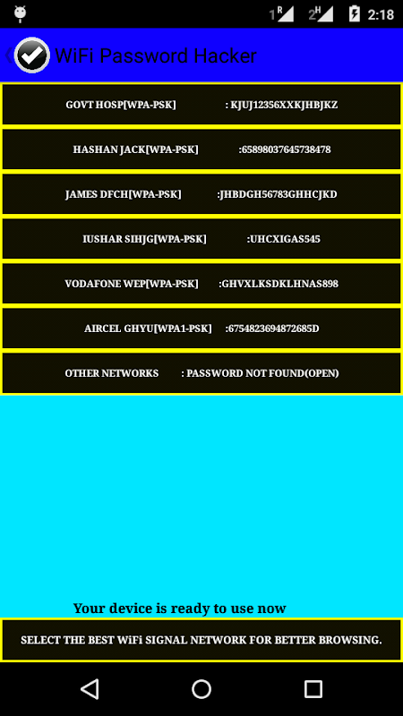 This app is a simulation of WIFI Signal PASSWORD HACKER.