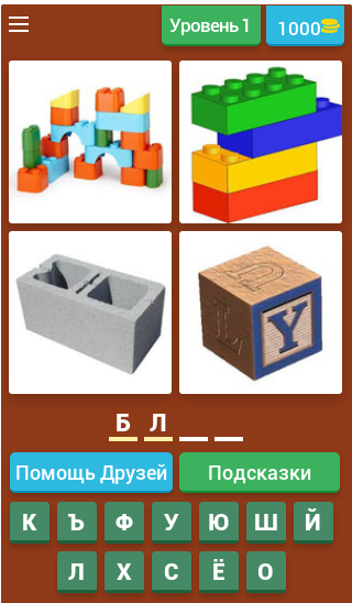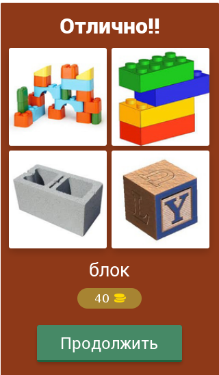 Каждый уровень состоит из 4 изображений. У 4 изображений есть одно слово, обычное в них. Найдите общее слово во всех 4 картинах.
