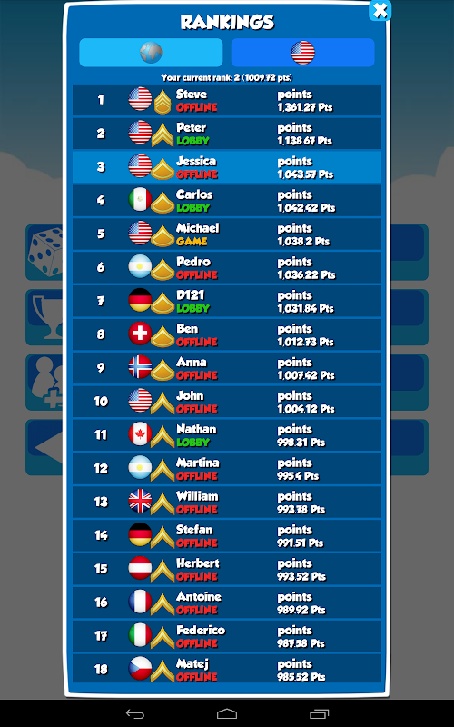 Look for “4 in a Row” opponents worldwide. The all-time classic “4 in a Row” is available internationally and you can play online against gamers from around the world. A flag shows you where your opponent comes from. As soon as your opponent has installed the free app, the games can begin.