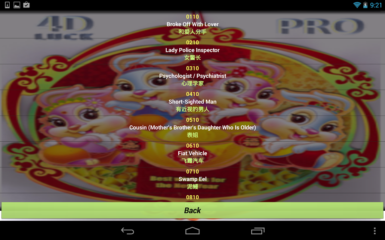 The 4D LUCK treasure chest is equivalent to a special little clandestine chinese book called “Chifa”, one with Tua Pek Kong (Tai Pak Koong) on the cover which correlates numbers to certain objects and actions. You can translate your dreams, incidents, encounters and inspirations into lucky 4D numbers. This is also 4-digit lucky number generator for your favorite Lottery below, designed to be fast and easy to use.You can also use the 4D LUCK without internet connection.